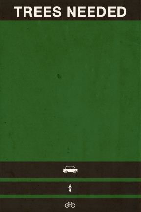 TREES NEEDED - AAA says the average American drives 29.2 miles per day. (source) That's 61.32 pounds of CO2. (source) - There are lots of kinds of trees with varying capacity to absorb CO2 and different lifespans and such, so we assumed the average tree absorbs 1000 pounds of CO2 over the course of a 50 year lifespan: 20 pounds per year, 0.05 pounds per day. (source) - This means the average American driver needs a forest of 613 trees to absorb or offset the CO2 emitted by driving a car. - If the average cyclist rides 12 miles per day, they will produce 1.44 pounds of CO2. - A person walking 8 miles per day will also produce 1.44 pounds of CO2. - Each of these people will require 14 living trees to offset their daily carbon footprint of transportation. |