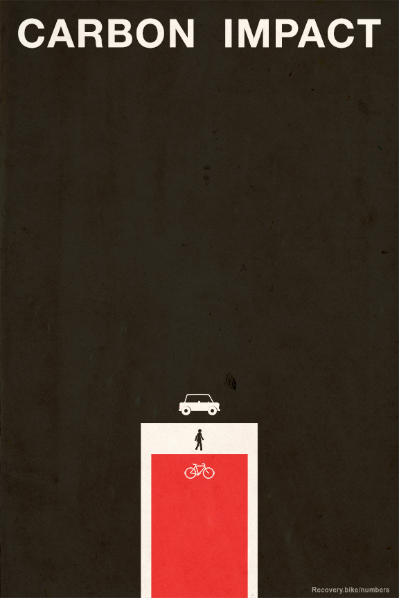 CARBON IMPACT - Driving a gasoline powered car produces about 1 pound of carbon dioxide (CO2) per mile. (source) - Manufacturing a car also produces CO2. Over the lifetime of the average car, the manufacturing "cost" is about 1.1 pounds of CO2 per mile. (source) - Added together, this means that driving a car emits about 2.1 pounds of CO2 per mile. - This also means that driving electric cars won’t save us. Without any fossil fuel consumption, a car still "emits" 1.1 pounds of CO2 per mile because of the pollution created through manufacturing. - Riding a bicycle also uses fuel. Riding a bike burns calories. The more you exercise, the more you have to eat and food production has a CO2 impact. - The average rider produces 0.06 pounds of CO2 emissions per mile by way of consuming more food. This number goes up if that extra food is meat. It goes down if that extra food is kale. (source) - The CO2 "costs" of manufacturing a new bicycle are also about 0.06 pounds per mile. (source) - So riding a bike produces about 0.12 pounds of CO2 per mile, about 5% of a car's 2.1 pounds. - Walking burns almost 3 times as many calories per mile as bike riding. (source) - With no manufacturing "costs" walking produces about 0.18 pounds of CO2 per mile. It takes more calories to walk a mile than to bike a mile. (The manufacturing cost of shoes was not factored into these numbers.) Please note: not all sources come up with exactly the same numbers, so we have tried to be conservative when choosing data points. Also we have made some minor tweaks when appropriate based on our own experience and our knowledge of our customers at Recovery Bike Shop. Having said that, almost all of the research agrees: driving a low occupancy vehicle produces several times the carbon dioxide pollution of riding a bike. It is worth noting the biggest exception we found. One study revealed that "fully 75 percent of a car's lifetime carbon emissions stem from the fuel it burns, not its production. A further 19 percent of that is production and transportation of the fuel, leaving just six percent for the car's manufacture." (source) Most of our research did not agree with this data point, however, if this is correct, driving an electric car would result in a dramatic reduction in CO2 emissions. The next closest source said this: "The manufacturing of a car accounts for about 30% of its carbon footprint over its lifespan." (source) |